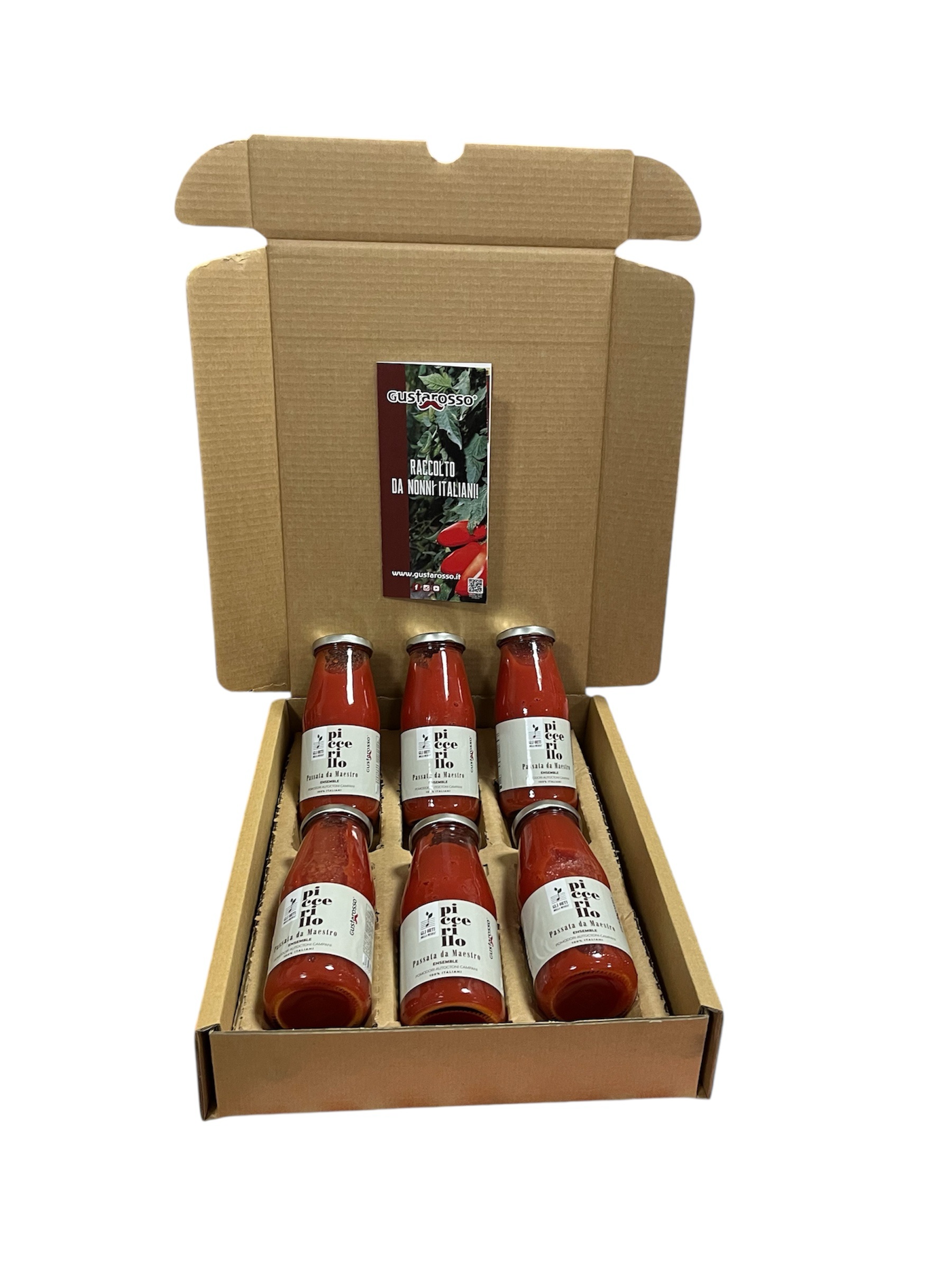 Grazie ai metodi di coltivazione artigianali tramandati dagli anziani contadini di Gustarosso e ad un attento procedimento di conservazione basato su temperature controllate, E’stato realizzato questo prodotto, frutto dell’unione di antiche varietà di pomodori autoctoni campani.